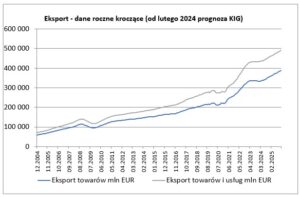 Saldo obrotów bieżących w ujęciu rocznym kroczącym po styczniu okazało się dodatnie i wyniosło 10 836 mln EUR, co stanowiło odpowiednik 1,43% PKB Polski. Po grudniu saldo obrotów bieżących było dodanie i wyniosło 11 903 mln EUR, tj. 1,59% PKB Polski. Mimo lekkiej korekty nadwyżka pozostaje silna. Jeszcze we wrześniu 2022 ujemne saldo wyniosło -18 610 mln EUR co było odpowiednikiem aż -2,93% PKB.
