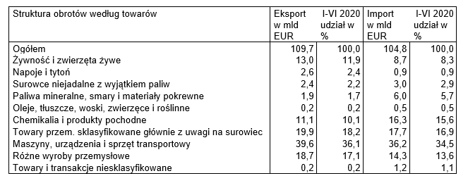 Eksport i import w okresie I-VI 2020 roku