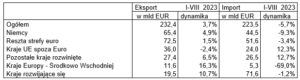 Eksport i import w okresie styczeń – sierpień 2023 >>> pobierz w PDF