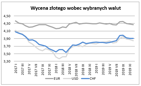 W grudniu złoty wzmocnił się wobec euro – o 0,3% do 4,2721 i równocześnie okazał się o 0,4% mocniejszy niż przed rokiem (w listopadzie złoty był mocniejszy niż przed rokiem również o 0,4%). Zmiany te nieznacznie pogorszyły pozycję konkurencyjną naszych eksporterów. Podobnie prezentowała się sytuacja eksporterów rozliczających sprzedaż w dolarach. W grudniu złoty wzmocnił się w stosunku do tej waluty – o 0,8% do 3,8443. Jednocześnie okazał się słabszy niż przed rokiem o 2,9% (w listopadzie złoty był słabszy niż przed rokiem o 3,2% a w październiku o 3,9%). Osłabienie złotego względem dolara (w porównaniu do kursów sprzed roku) jest istotne dla producentów konkurujących z dostawcami z dalekiego wschodu. Oferta dalekowschodnia, kalkulowana w drożejących na świecie dolarach, staje się w takiej sytuacji nieatrakcyjna dla części odbiorców. W to miejsce często wchodzą nasi dostawcy. Niestety drogi dolar to równocześnie drogie surowce potrzebne do funkcjonowania naszej gospodarki. Teraz obserwujemy proces odwrotny – dolar relatywnie tanieje.
