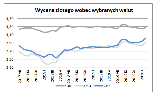 W lutym złoty osłabił się wobec euro – o 0, 7% do 4, 2789 i równocześnie okazał się o 0, 9% mocniejszy niż przed rokiem (w styczniu złoty był mocniejszy niż przed rokiem o 1,0%). Zmiany te nieznacznie poprawiły pozycję konkurencyjną naszych eksporterów. Korzystniej prezentowała się sytuacja eksporterów rozliczających sprzedaż w dolarach. W lutym złoty osłabił się w stosunku do tej waluty – o 2, 4% do 3,9201. Jednocześnie okazał się słabszy niż przed rokiem o 3, 1% (w styczniu złoty był słabszy niż przed rokiem o 1,8%).