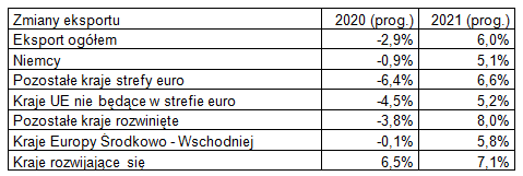 W roku 2020 można oczekiwać zmniejszenia naszej sprzedaży eksportowej z 232,9 mld EUR w roku 2019 do 226,2 mld EUR (o 2,9%). Regres, choć dotkliwy, może okazać się jednak wyraźnie mniejszy od szacowanego przed sześcioma miesiącami (spadek o 18,1%). W roku 2021 eksport wynosząc 239,9 mld EUR może okazać się o 6,0% wyższy niż w roku 2020.