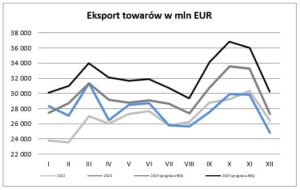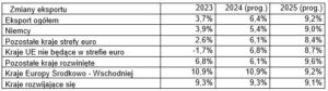 Według naszych najnowszych szacunków, eksport w roku 2024 może zwiększyć się do 355,3 mld EUR tj. o 6,4%, a w roku 2025 wynosząc 388,0 mld EUR może być wyższy niż rok wcześniej o 9,2%.