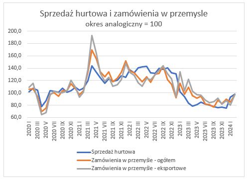 Handel hurtowy w lutym 2024 i nowe zamówienia w przemyśle