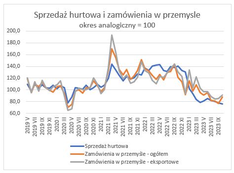 Handel hurtowy w październiku 2023 i nowe zamówienia w przemyśle