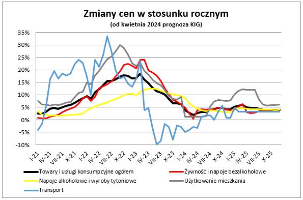 W stosunku do marca 2023 roku ceny wzrosły w niemal wszystkich grupach towarów i usług – z wyjątkiem transportu, w którym zanotowano spadek cen r/r o 2,9%. W pozostałych grupach ceny w ujęciu rocznym kształtowały się następująco: edukacja (wzrost o 9,0%); restauracje i hotele (wzrost o 8,6%); inne towary i usługi (wzrost o 5,4%); napoje alkoholowe i wyroby tytoniowe (wzrost o 5,2%); rekreacja i kultura (wzrost o 4,1%); zdrowie (wzrost o 4,0%); łączność (wzrost o 2,6%); wyposażenie mieszkania i prowadzenie gospodarstwa domowego (wzrost o 2,6%); użytkowanie mieszkania lub domu i nośniki energii (wzrost o 1,3%); odzież i obuwie (wzrost o 1,1%); żywność i napoje bezalkoholowe (wzrost o 0,3%).