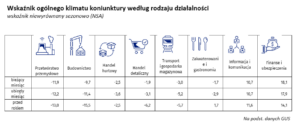 - budownictwo – wskaźnik (minus 9,7) jest lepszy niż przed miesiącem (minus 11,4) i lepszy niż przed rokiem (minus 15,5).