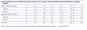 W ankiecie przedsiębiorcy wyrazili również opinię na temat wpływu wojny na sferę zatrudnienia (odpływu i napływu pracowników). W czerwcowej ankiecie GUS branżami, w których największy odsetek firm deklarował odpływ pracowników (poważny albo nieznaczny) były: zakwaterowanie i gastronomia (31,9%) oraz przetwórstwo przemysłowe (30,3%). Z kolei napływ pracowników z Ukrainy deklarują najczęściej przedstawiciele branży zakwaterowania i gastronomii (37,5% ankietowanych).