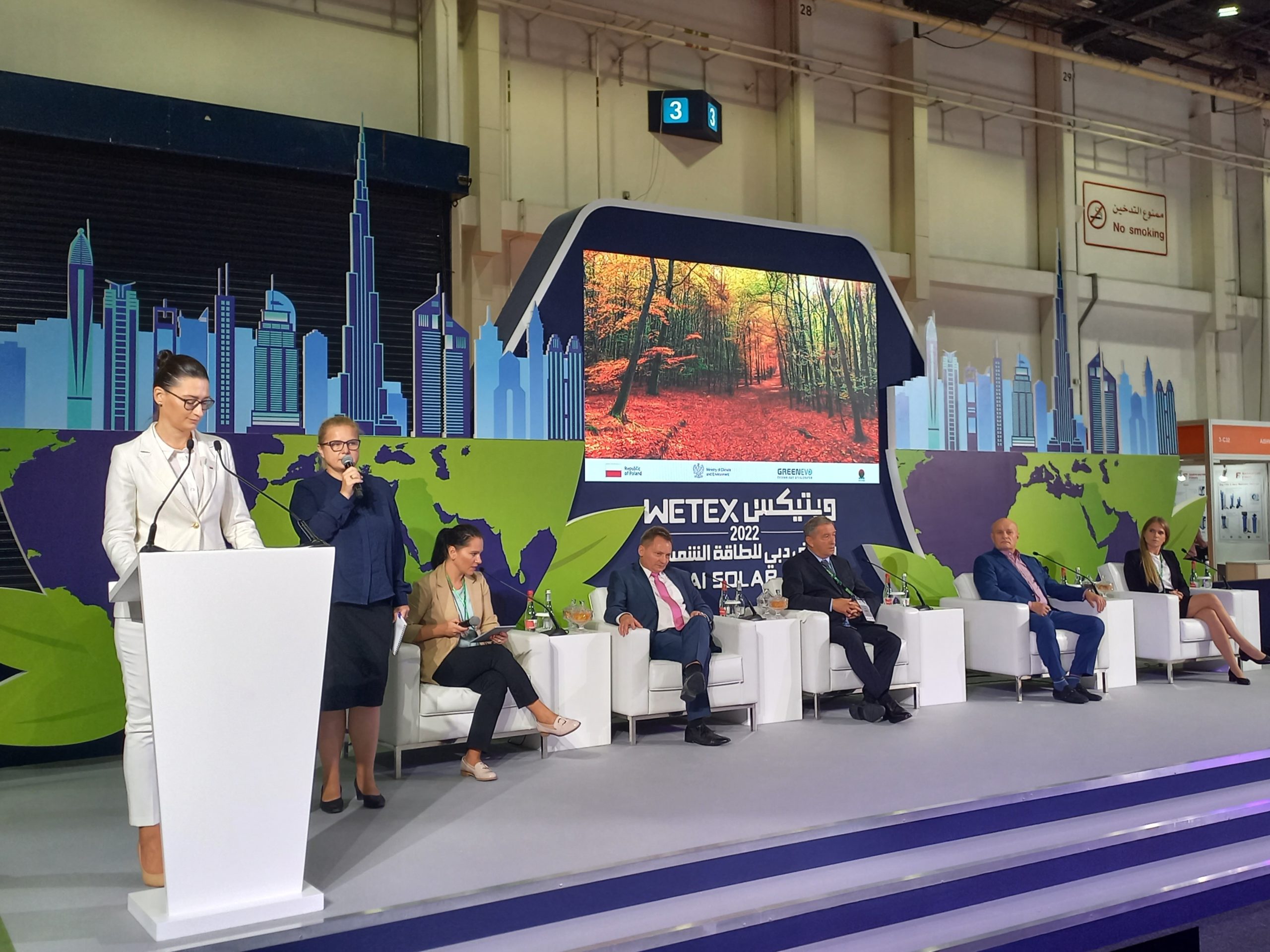 Pani Małgorzata Golińska, Sekretarz Stanu w Ministerstwo Klimatu i Środowiska, przewodniczyła misji gospodarczej GreenEvo do Zjednoczonych Emiratów Arabskich. W targach WETEX & Dubai Solar Show 2022 i w misji uczestniczyło 8 polskich firm. Są one laureatami konkursu „GreenEvo – Akcelerator Zielonych Technologii” zorganizowanego przez Ministerstwo Klimatu i Środowiska, przygotowanego z myślą o promocji polskich zielonych technologii oraz mającego na celu ułatwienie laureatom ekspansji zagranicznej poprzez nawiązywanie kontaktów międzynarodowych.