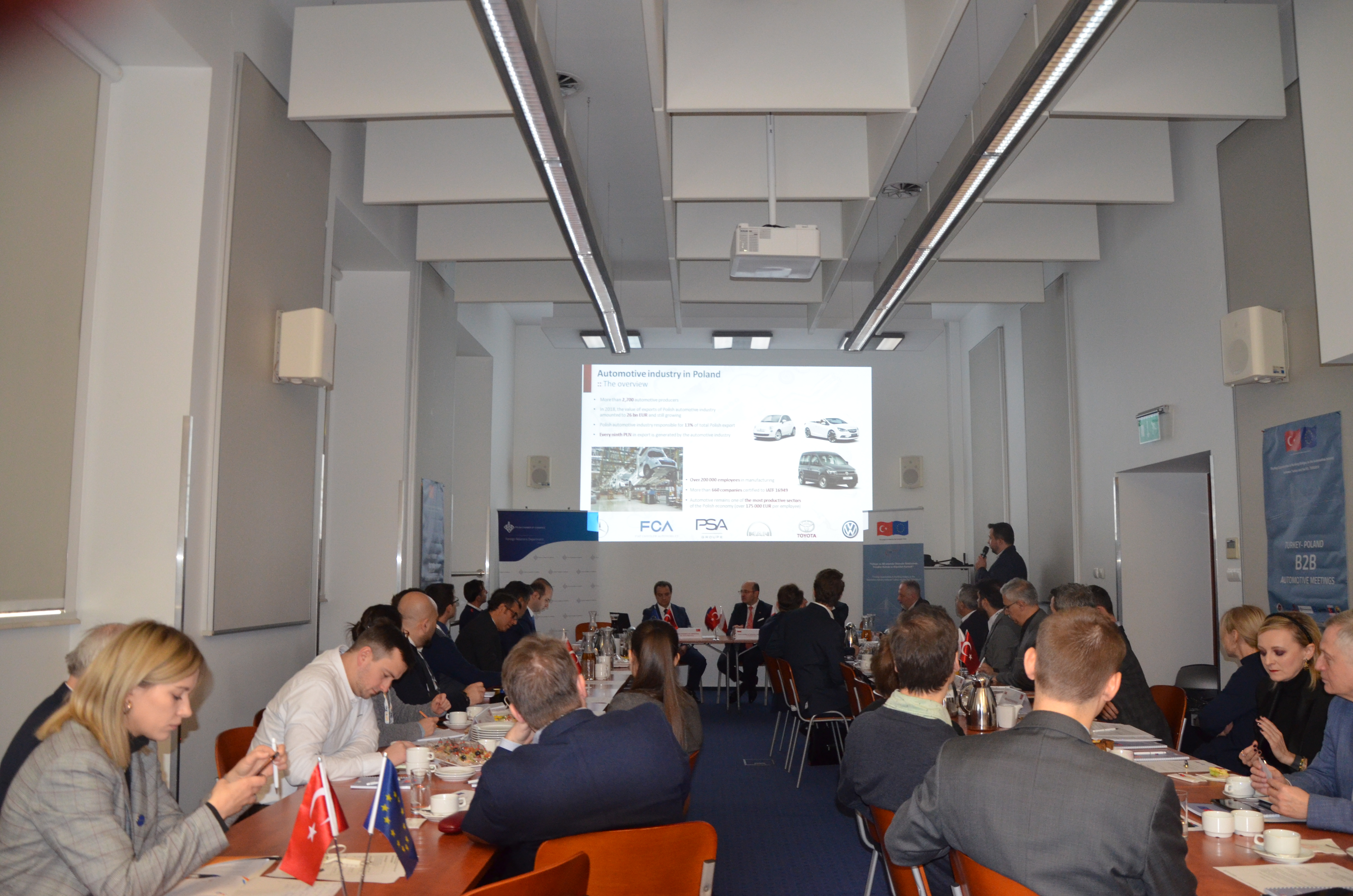 Pierwszego dnia pobytu delegaci uczestniczyli w Spotkaniu Biznesowym, w siedzibie Krajowej Izby Gospodarczej. W informacyjnej części Spotkania informacje na temat aktualnej sytuacji w branży zostały przekazane przez przedstawicieli Polskiej Agencji ds. Inwestycji i Handlu, Polskiej Grupy Motoryzacyjnej oraz Polskiej Izby Motoryzacji. Spotkanie zakończyła sesja rozmów bilateralnych polskich i tureckich przedstawicieli biznesu.