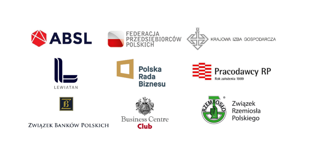 Krajowa Izba Gospodarcza, Pracodawcy RP, Konfederacja Lewiatan, Business Centre Club, Związek Rzemiosła Polskiego, Federacja Przedsiębiorców Polskich, Polska Rada Biznesu, Związek Liderów Sektora Usług Biznesowych i Związek Banków Polskich zadeklarowali chęć współpracy w zakresie zgłaszania i wdrażania konstruktywnych i efektywnych rozwiązań ratunkowych.