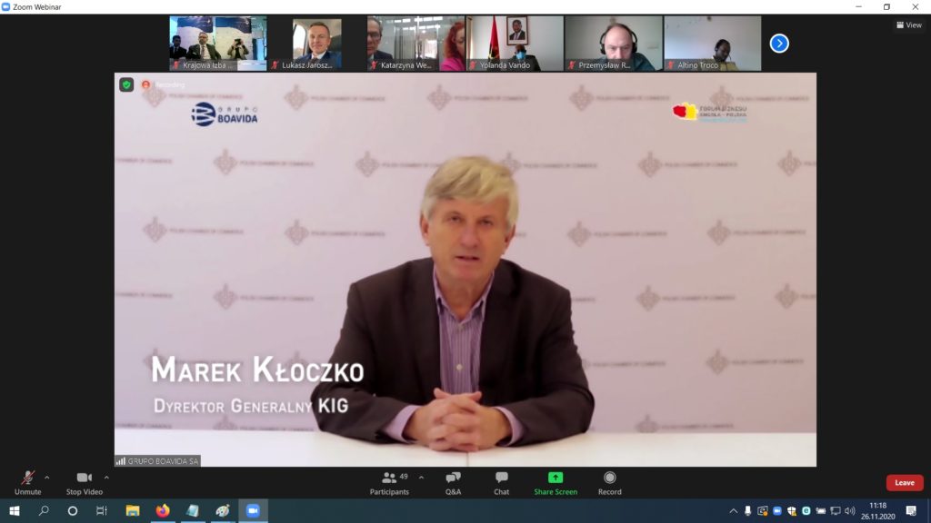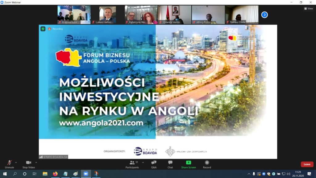 Krajowa Izba Gospodarcza wraz z Grupo Boavida SA w dniu 26 listopada 2020 r. zorganizowała Forum Polska-Angola online: Angola – Twój partner w Afryce!, poświęcone możliwościom wzajemnej współpracy.