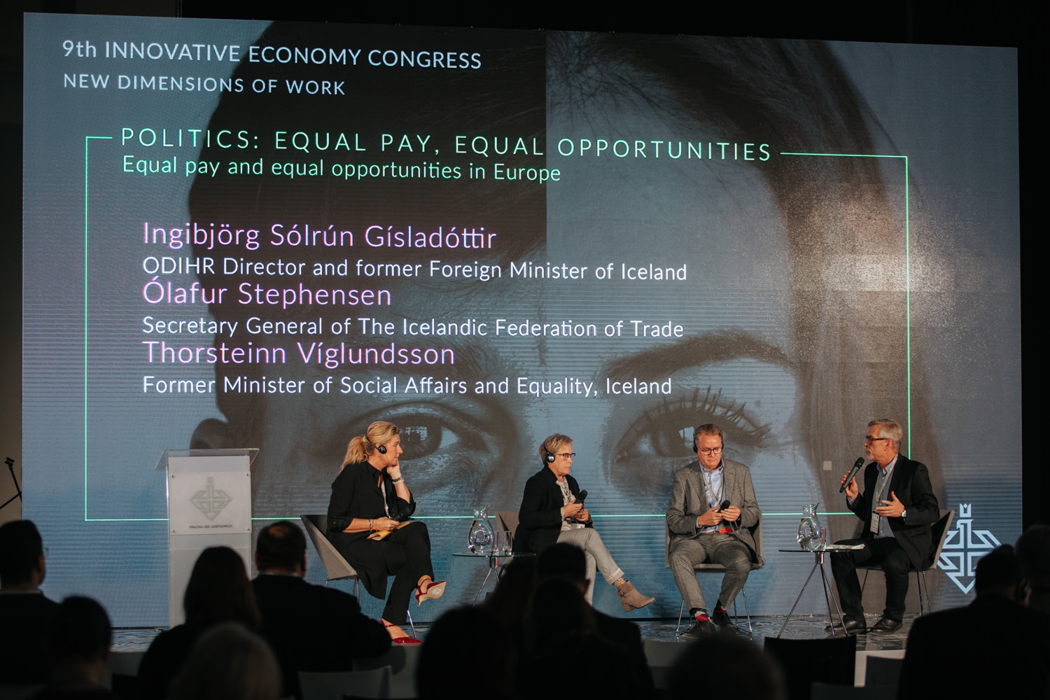 Po wystąpieniach gości specjalnych prowadzący wydarzenie Jacek Żakowski zaprosił na scenę uczestników panelu poświęconego dobrym praktykom z zakresu równości szans w Europie: Ingibjorg Solrun Gisladottir, , Benję Stig Fagerland oraz Olafura Stephensena, Sekretarza Generalnego Islandzkiej Federacji Handlu , którzy we wspólnej dyskusji wymieniali pozytywne skutki wyrównania płac i parytetów zatrudnienia obu płci.