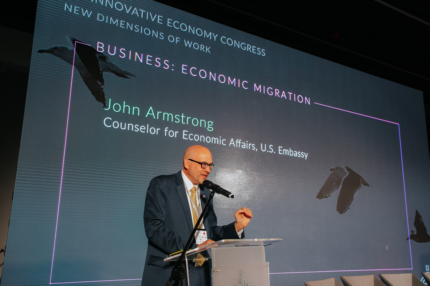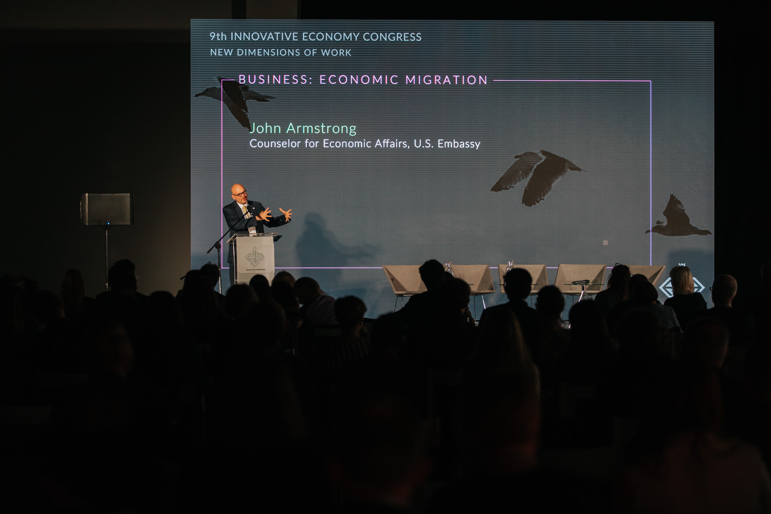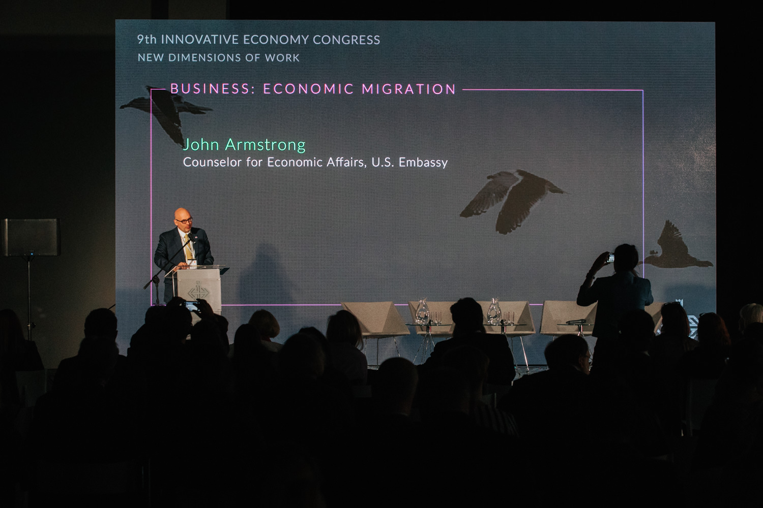 Druga część wydarzenia poświęcona była migracjom ekonomicznym. Dyskusję panelową poprzedziło wystąpienie John’a Armstronga, Doradcy Ekonomicznego Ambasady US w Polsce . W swoim wystąpieniu Pan Armstrong przekonywał, że migracje ekonomiczne zarówno te wewnętrzne jak i zewnętrzne od wieków stanowią nieodzowną część rozwoju cywilizacyjnego.