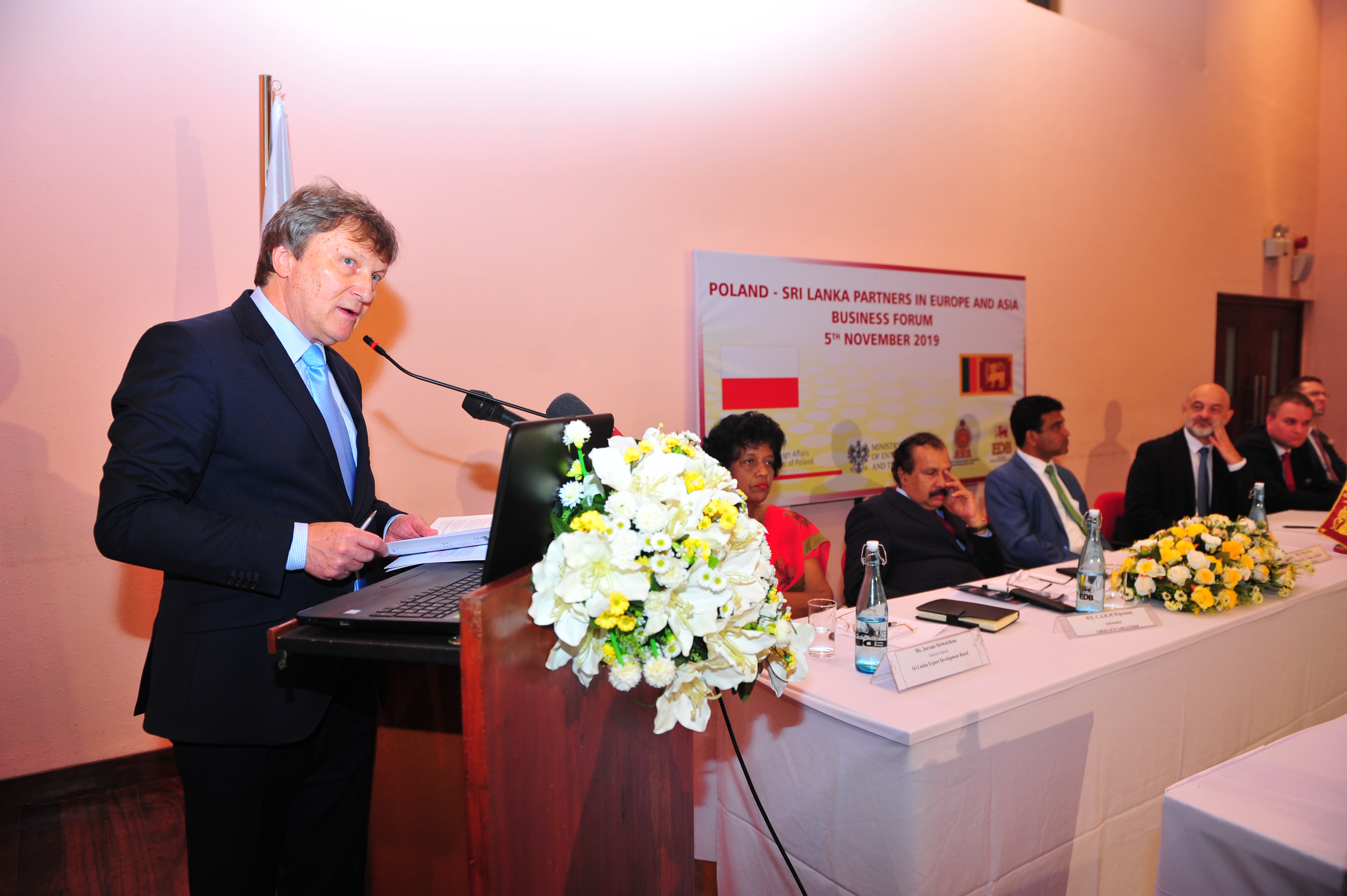 Kolejnego dnia (5 listopada) odbyło Forum Biznesu Polska-Sri Lanka wraz z rozmowami B2B. Wydarzenie zorganizowane zostało przez Krajową Izbę Gospodarczą oraz Sri Lanka Export Development Board przy wsparciu Ambasady RP w Nowym Delhi. Podczas Forum miało miejsce podpisanie porozumienia o współpracy pomiędzy KIG oraz Narodową Izbą Gospodarczą Sri Lanki (National Chamber of Commerce of Sri Lanka), którego celem jest intensyfikacja dwustronnych relacji biznesowych. Dokument został podpisany w obecności Podsekretarza Stanu w MSZ M. Langa, Wiceministra Strategii Rozwojowych i Międzynarodowego Handlu Sri Lanki N. B. Yayamaha, Ambasadora RP w Inadiach A. Burakowskiego, Ambasadora Sri Lanki w Polsce Pana C.A.H.M. Wijeratne oraz CEO PLL LOT M. Fijoła. Wieczorem delegacja biznesowa uczestniczyła w uroczystej kolacji wydawanej przez Prezesa Hayleys PLC Mohana Pandithage. To lankijskie przedsiębiorstwo współpracuje z PLL LOT przy realizacji lotów Warszawa-Colombo.