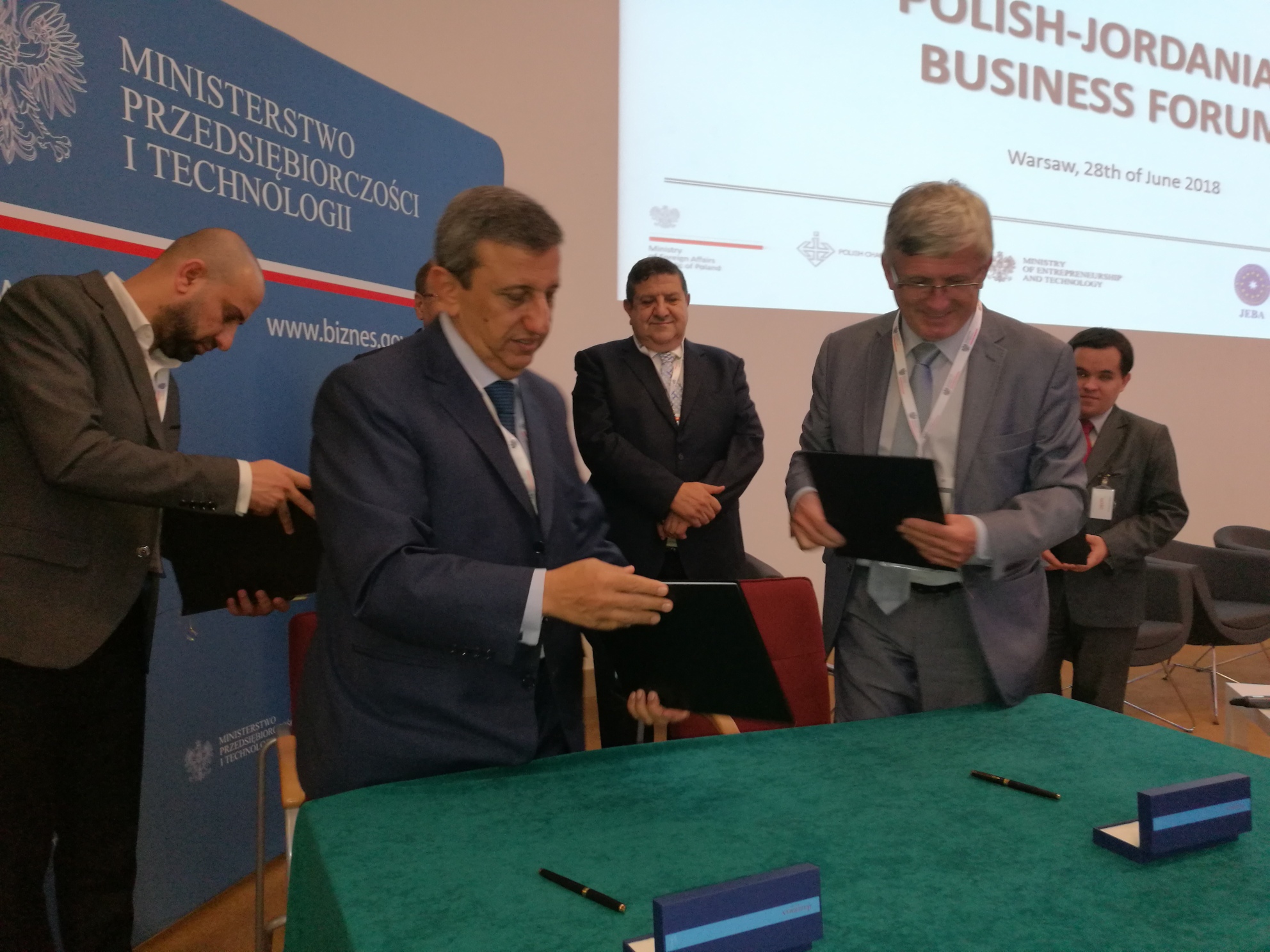Bezpośrednio po forum biznesowym, podczas którego Wiceprezes, Dyrektor Generalny KIG Marek Kłoczko podpisał trzy umowy o współpracy z jordańskimi instytucjami otoczenia biznesu: Amman Chamber of Commerce, Amman Chamber of Industry, Jordan Europe Business Association (JEBA)