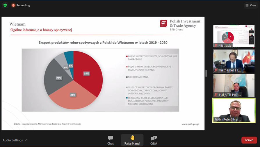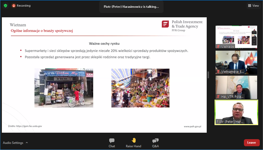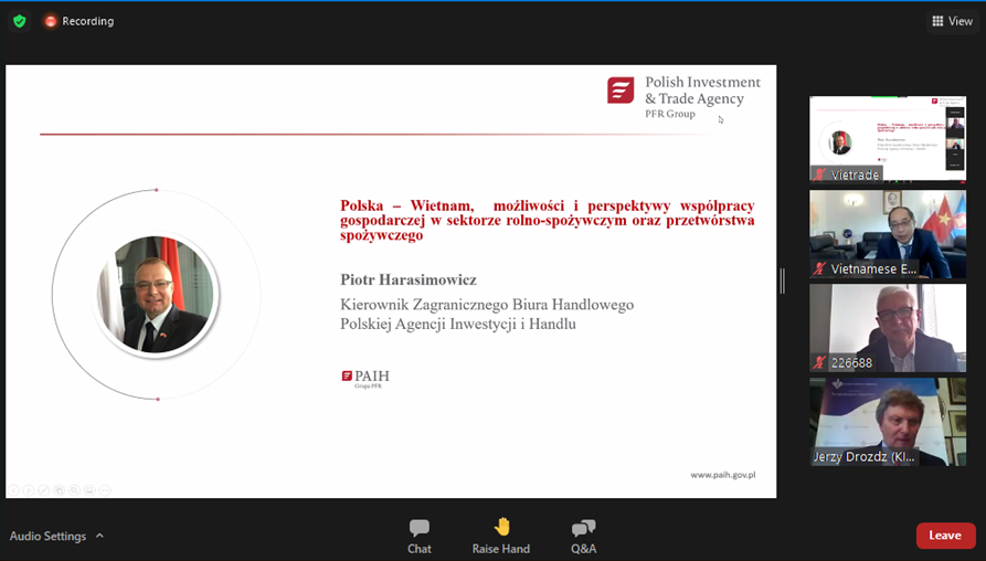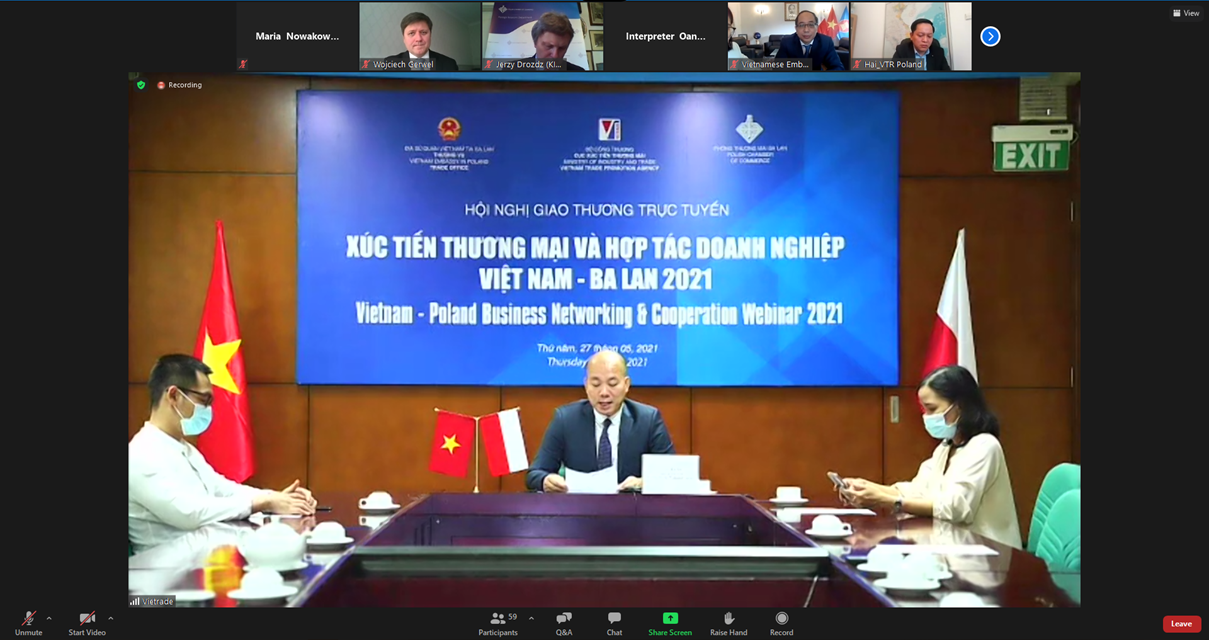 Po części seminaryjnej odbyły się w czterech pokojach spotkań indywidualne prezentacje i rozmowy handlowe pomiędzy firmami. Organizatorem webinarium byli Krajowa Izba Gospodarcza, Ambasada Socjalistycznej Republiki Wietnamu w Polsce oraz Wietnamska Agencja Promocji Handlu VIETRADE Ministerstwa Handlu.