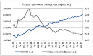 Prognozowany aktualnie stan rezerw walutowych dla końca roku 2023 to 170 600 mln EUR, wyższy niż w końcu 2022 o 9,0%. Rezerwy powinny wtedy pokrywać 4,79 miesiąca importu towarów i usług, 33,8% podaży pieniądza oraz 47,5% zadłużenia zagranicznego.