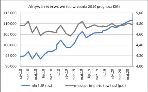 Prognozowany dla końca roku 2019 stan rezerw walutowych to 107 119 mln EUR, wyższy niż w końcu 2018 o 4,7%. Rezerwy powinny wtedy pokrywać 4,75 miesiąca importu towarów i usług, 28,5% podaży pieniądza oraz 33,9% zadłużenia zagranicznego.