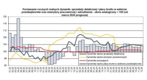 Warto również zauważyć, że dynamiki sprzedaży w ujęciu realnym i nominalnym – wraz ze spadkiem inflacji – są coraz bardziej zbliżone, podczas gdy np. w szczycie inflacji na przełomie 2022/2023 roku różnica ta w przypadku dynamiki rocznej zbliżała się do 20 pkt. proc.