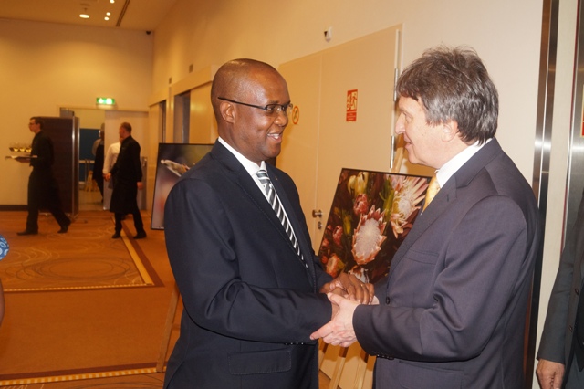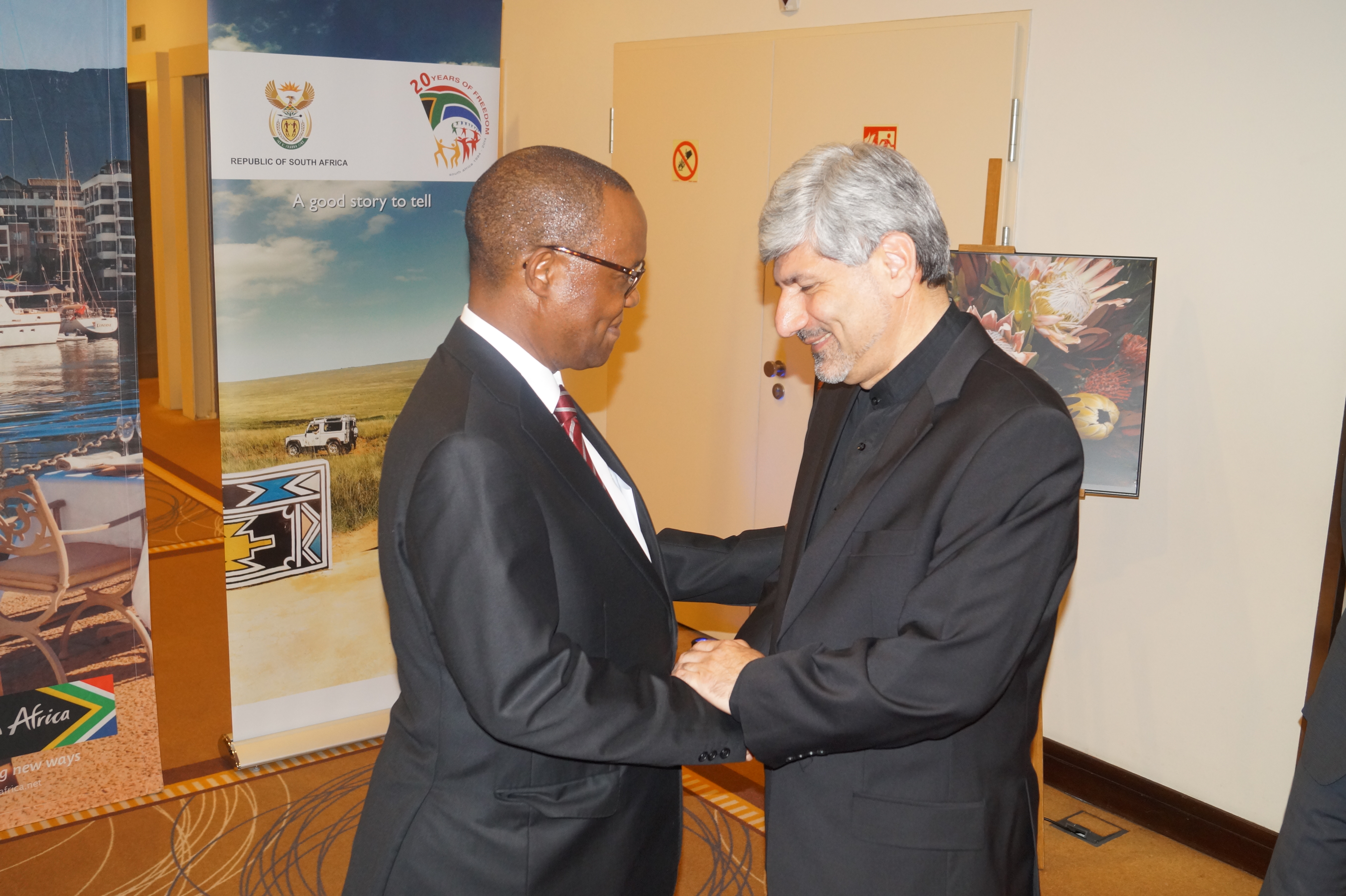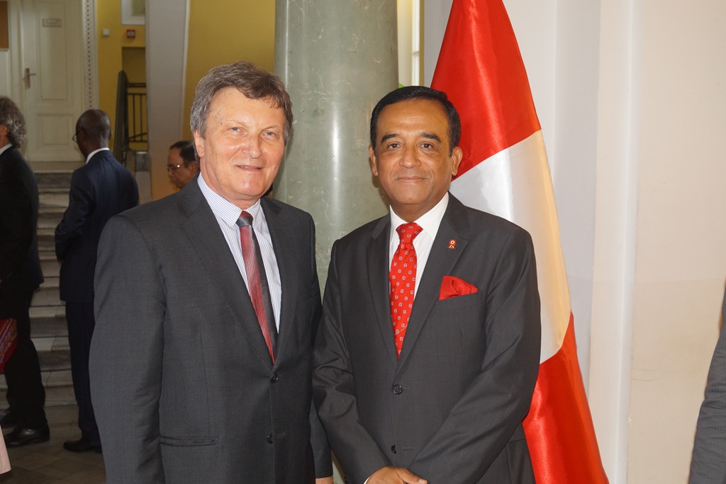 Dyr. J. Drożdż z Ambasadorem Republiki Południowej Afryki, J.E. Simon J. Ntombela podczas przyjęcia z okazji Święta Narodowego RPA (27 kwietnia 2017)