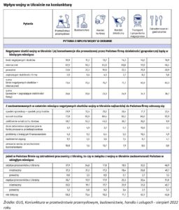 Główny Urząd Statystyczny wraz z sierpniowym komunikatem o koniunkturze w przetwórstwie przemysłowym, budownictwie, handlu i usługach opublikował wyniki ankiety na temat wpływu wojny na Ukrainie na działalność polskich firm.