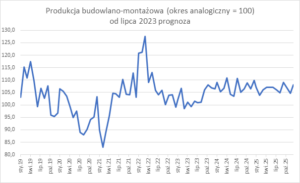 W stosunku do czerwca 2022 roku produkcja budowlano-montażowa spadła jedynie w przypadku budowy budynków (o 5,7%). Wzrosła natomiast w jednostkach zajmujących się budową obiektów inżynierii lądowej i wodnej (o 5,9%) oraz w przypadku robót budowlanych specjalistycznych (o 3,8%).