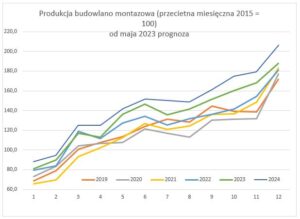 - W okresie I – IV 2023 roku produkcja budowlano montażowa wzrosła w stosunku do analogicznego okresu ubiegłego roku o 3,9%.