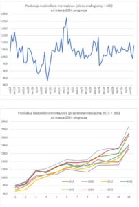 Według statystyk oczyszczonych z wpływu czynników o charakterze sezonowym, produkcja budowlano-montażowa w lutym 2024 r. była niższa o 5,7% niż rok wcześniej oraz wyższa o 2,0% w porównaniu z poprzednim miesiącem.
