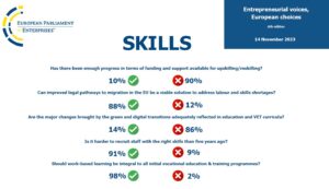 Dyskusji Przedsiębiorców – podczas Europejskiego Parlamentu Przedsiębiorstw – na temat konieczności podejmowania działań zarówno na poziomie instytucji edukacyjnych, jak i w sferze polityki gospodarczej – towarzyszyło głosowanie, którego wyniki odzwierciedlają globalne trendy i wyzwania stojące przed rynkiem pracy w Unii Europejskiej.