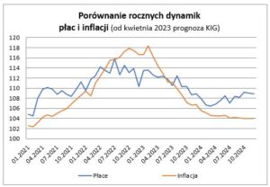 W kwietniu płace są zazwyczaj niższe od marcowych. Wypadają z nich bowiem wypłaty ruchomych części wynagrodzenia takich jak premie i nagrody. Spadek w kwietniu 2023 roku może sięgnąć 1,0% i będzie głębszy od notowanego przed rokiem. W konsekwencji dwunastomiesięczna dynamika płac ulegnie zmniejszeniu z marcowych 12,6% do 12,1%.