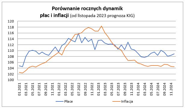 W ostatnich kilku miesiącach obserwowane jest silne falowanie rocznej dynamiki płac. Wynika ono głównie z innego niż przed rokiem terminarza wypłat ruchomych części wynagrodzeń takich jak premie i nagrody. W kolejnych miesiącach należy oczekiwać stopniowego obniżania się rocznej dynamiki płac. Ustępuje bowiem część czynników zazwyczaj odpowiedzialnych za dynamizację płac. Wolniej postępuje zmiana struktury zatrudnienia (kiedy powstają nowe lepiej płatne miejsca pracy, a te mniej atrakcyjne są opuszczane przez pracowników). W dobie słabszej koniunktury mniej będzie też ruchomych części wynagrodzeń – premii, nagród, wypłat w systemie akordowym. W okresie słabszych wyników firm jest też mniej możliwości by podnosić ogółowi pracowników płace w reakcji na zwiększenie płacy minimalnej.