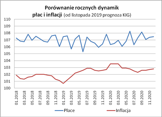 W listopadzie powinien być obserwowany sezonowy wzrost płac (związany z pojawieniem się większej ilości ruchomych składników płac – jak premie i nagrody). Wzrost ten może być nawet nieco większy niż w ubiegłym roku. Konsekwencją będzie podwyższenie rocznej dynamiki płac do około 6,4% z 5,9% w październiku. W przypadku zatrudnienia oczekiwany jest niewielki wzrost.