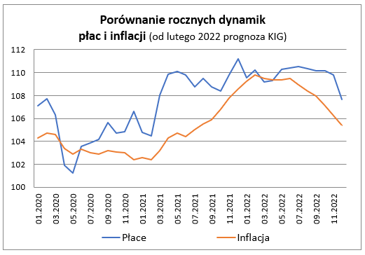 Silny wzrost zatrudnienia w styczniu jest zjawiskiem typowym. Trzeba mieć jednak na uwadze, iż jedynie w części wynika on z faktycznego przyrostu zatrudnienia w firmach sektor przedsiębiorstw. Zdecydowanie bardziej wynika on z dorocznej zmiany statystyk i rozszerzenia dotychczasowej grupy przedsiębiorstw o dodatkowe, które wcześniej nie figurowały w statystykach jako zatrudniające mniejszą od progowej liczby pracowników (10 osób). W różnych latach ów efekt może przybierać mocno zróżnicowane rozmiary. Od kilkudziesięciu tysięcy osób do stu-kilkudziesięciu tysięcy osób. Tegoroczny przyrost na poziomie 98,2 tys. należy uznać za pokaźny – wyższy od oczekiwanego. Spodziewano się bowiem przyrostu o około 45 – 50 tys. osób. W dodatku tegoroczny wzrost doskonale prezentuje się na tle anormalnego i asezonowego spadku zatrudnienia jaki zanotowano w styczniu roku 2021.