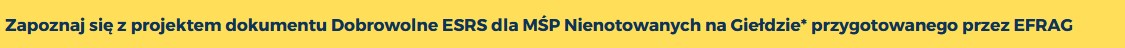 „Docelowo EFRAG chce stworzyć Standard, który firmy MŚP będą mogły zastosować dobrowolnie, a zatem nie będzie on obowiązkowy. Jego celem będzie wsparcie MŚP w ustrukturyzowaniu danych z obszaru ESG posiadanych przez firmę, a także w ujawnianiu ich zainteresowanym partnerom. Krajowa Izba Gospodarcza przetłumaczyła Projekt Dobrowolnych ESRS dla Małych i Średnich Przedsiębiorstw Nienotowanych na Giełdzie na język polski jeszcze na etapie konsultacji publicznych, tak aby polscy przedsiębiorcy już teraz mogli być na bieżąco i bez przeszkód zapoznać się z treścią dokumentu. Polskie tłumaczenie zostało zweryfikowane przez ekspertów ESG z Altemis i Forum Odpowiedzialnego Biznesu”.